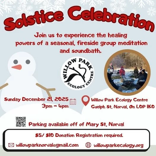 Come join-in to welcome the wonderful energy of the new season around a warming fire. Connect to Mother Earth’s gifts in reflection and music by Maha Kali Jaya ( www.goldenagewayshower.com). Celebrate life’s sustaining earth, while connecting to others. FREE event, accepting donations. Willow Park Ecology Centre access and parking: Hwy 7 at Mary St, Norval (just east of Georgetown). Let us know you’re coming: signup through this portal and choose the donate $10 or the zero cost tab. Donations support resources for our children's programs and events.